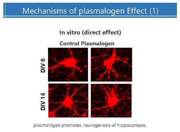 Plasmalogen promotes neurogenesis in senescence-accelerated mice and normal mice. This results in effective treatment of Alzheimer’s Disease. Plasmalogen inhibits neuroinflammation and amyloid β-protein accumulation in the brain. This results in effective prevention of Alzheimer’s Disease.
