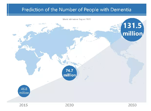 Alzheimer’s disease is one of the most common form of dementia which accounts for 60 to 80% of all dementia cases. Statistics from Alzheimer’s Disease International record approximate 44 million people worldwide living with Alzheimer’s disease or related dementia in 2016. It is the 6th leading cause of death in the United States, with one in three elderly dying of Alzheimer’s or other forms of dementia. Alzheimer’s may be among the costliest diseases for societies in Europe and the United States.