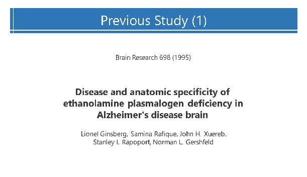 This slide outlines the progress of research on Pls, focusing on their association with Alzheimer’s disease. Research on Alzheimer’s disease was initially led by the United States; in 1995 and 1999, reduced levels of Pls in the brains of cadavers with Alzheimer’s disease were noted, and, subsequently, in 2007, reductions in the serum levels of Pls in living patients with Alzheimer’s disease were reported.